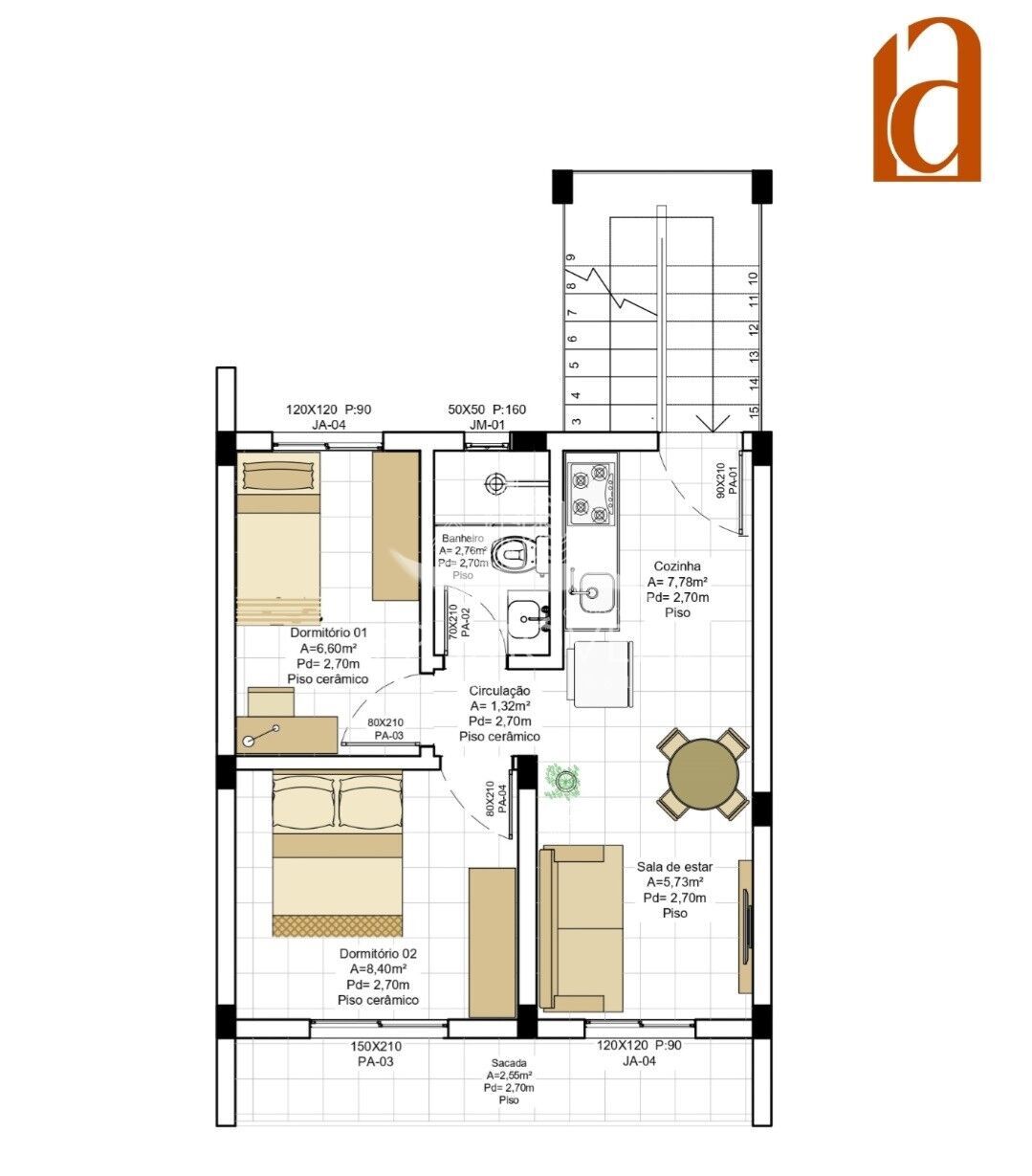 Área Privativa45m²